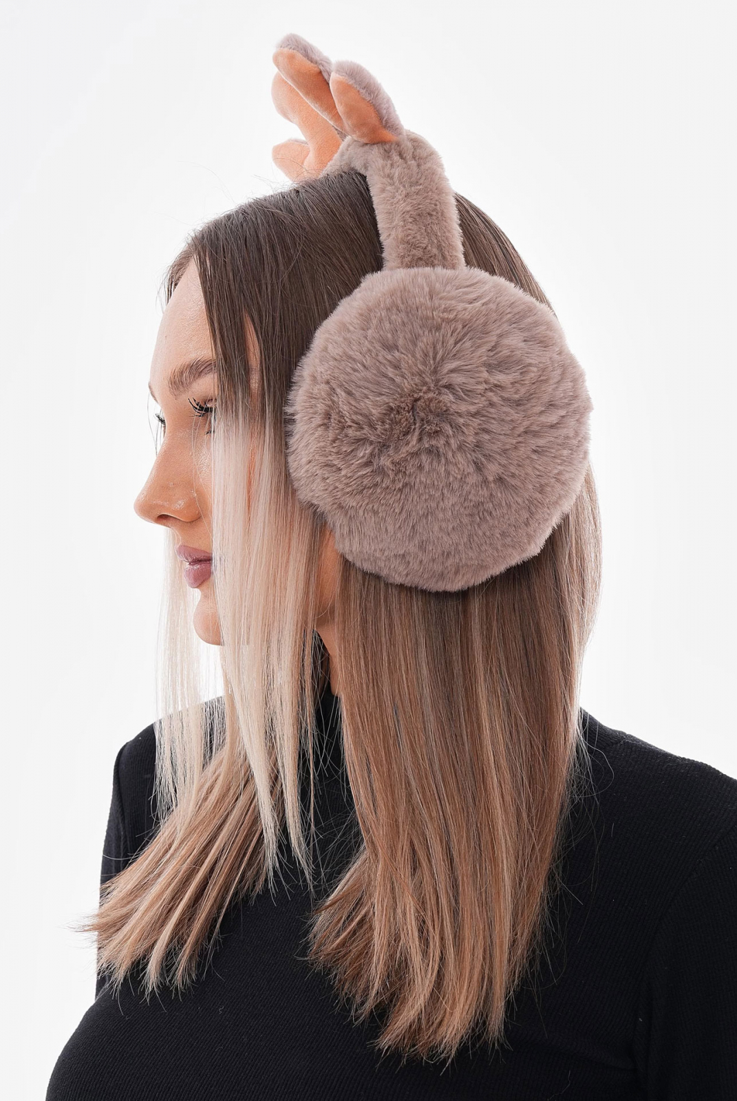 Casti pufoase din plus, pliabile, cu model urechi de ren.