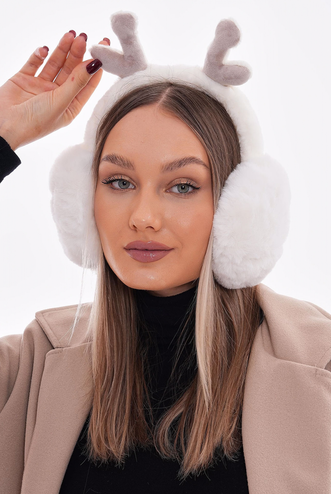 Casti pufoase din plus, pliabile, cu model urechi de ren.
