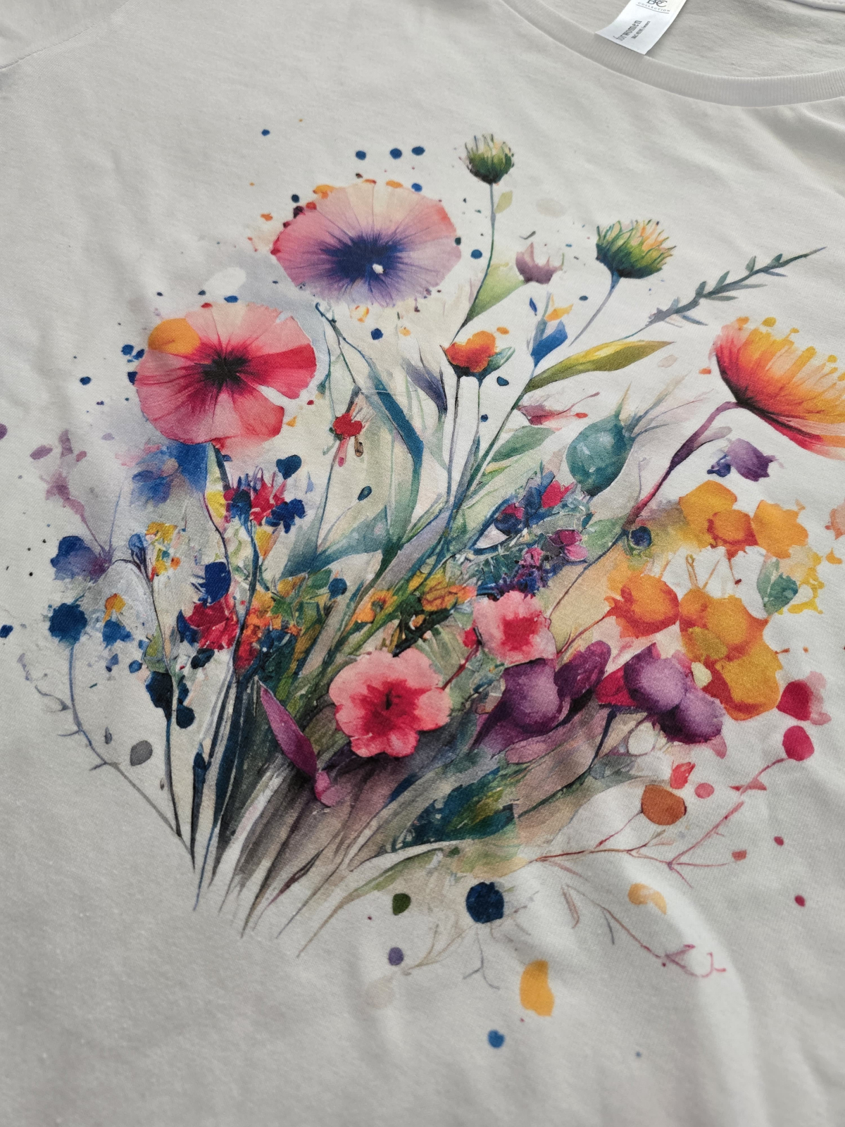 Un tricou de calitate din bumbac moale. Este confortabil iar imprimeul floral este viu colorat si rezistent la spălare.